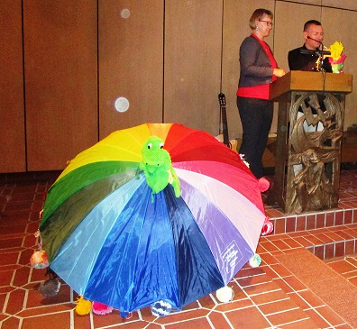 Beim Schulanfangsgottesdienst der Gebrüder-Grimm-Schule in St. Benedikt begrüßten die neue Schulleitung, Frau Anja Rahm, und Konrektor Matthias Volk die neuen ABC-Schützen. Da es für sie auch ein Anfang sei, packten sie eine Schultüte aus, in der alles Wichtige für ein Schulleben enthalten war.